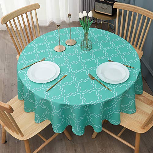 houzz Aoohome Geometric Leaf Decor Fabric Tablecloth, 60 inch Round Heavy Duty Table Cloth for Picnic and Party, Water Repellent, Spill Proof, Stain Resistant, Oil Proof, Washable, Green